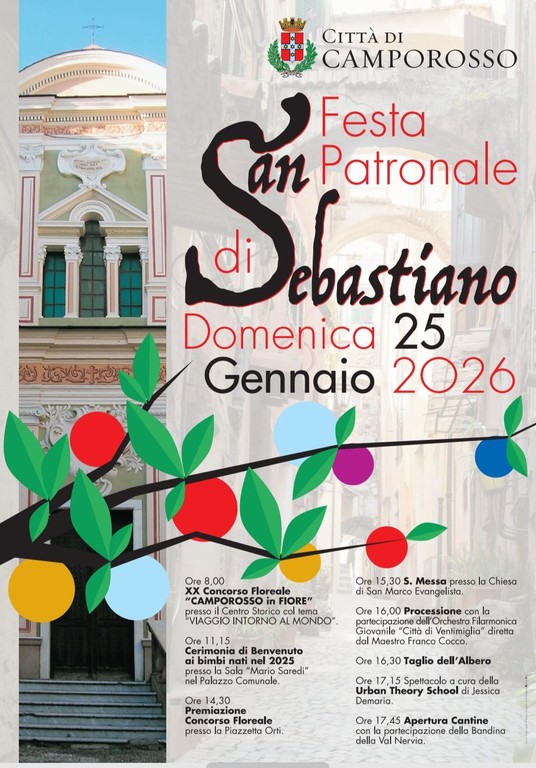 L’evento inizierà alle 8 con il XX concorso floreale ‘Camporosso in fiore’, che quest’anno avrà come tema ‘Viaggio intorno al mondo’, presso il centro storico mentre alle 11.15 vi sarà la cerimonia di benvenuto ai bimbi nati nel 2025 presso la sala Mario Saredi nel palazzo comunale. “Domenica 25 gennaio ricorrono i festeggiamenti dedicati al nostro patrono: San Sebastiano. E’ una ricorrenza ormai più che centenaria, negli archivi storici si trovano tracce di questa tradizione già nel ‘600 e rappresenta una giornata di unione che vede coinvolti tantissimi cittadini e visitatori di ogni età”.
